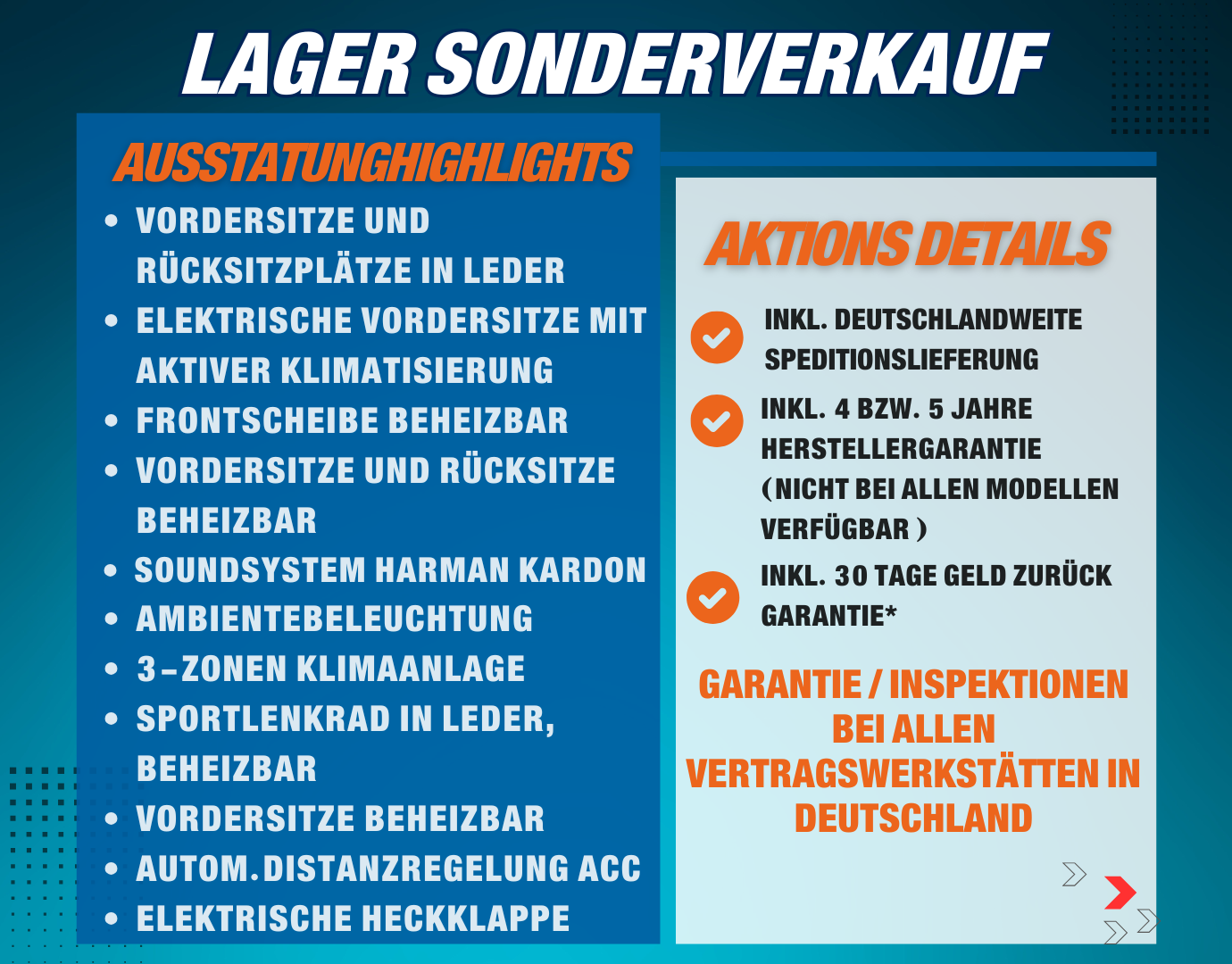 Neuwagen mit nachfolgenden Sonderausstattungen (Zusätzlich bzw. Abweichend zur Serienausstattung):