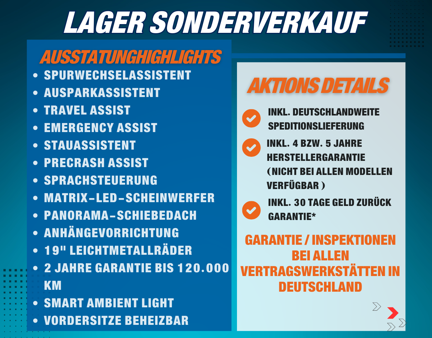 Hinweis zur Serienausstattung: Die Serienausstattung entspricht in weiten Teilen dem deutschen Modell – oft sogar mit weiteren Extras inklusive. Aus Platzgründen ist nur ein Auszug dargestellt. Für Details kontaktieren Sie bitte unser Verkaufsteam.