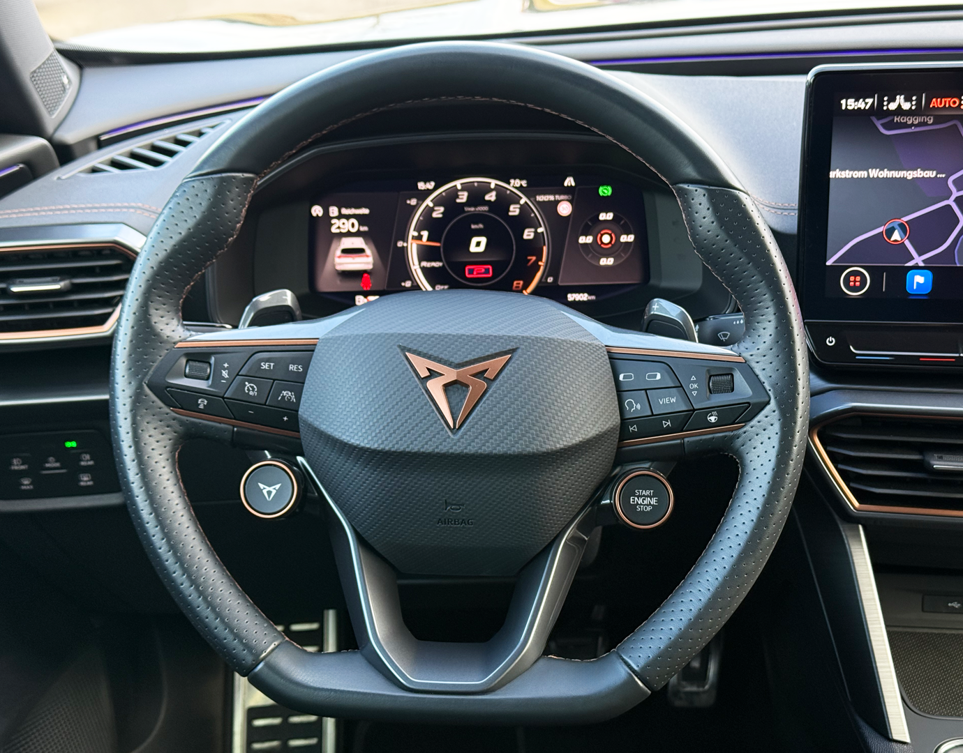 Innenausstattung CUPRA-Leder Paket "Schwarz" bestehend aus: Sportschalensitze vorne aus Leder in Schwarz; Fahrersitz elektrisch verstellbar mit Memory-Funktion; Außenspiegel mit Memory-Funktion;