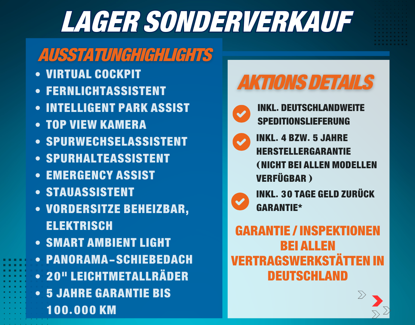 Hinweis zur Serienausstattung: Die Serienausstattung entspricht in weiten Teilen dem deutschen Modell – oft sogar mit weiteren Extras inklusive. Aus Platzgründen ist nur ein Auszug dargestellt. Für Details kontaktieren Sie bitte unser Verkaufsteam.