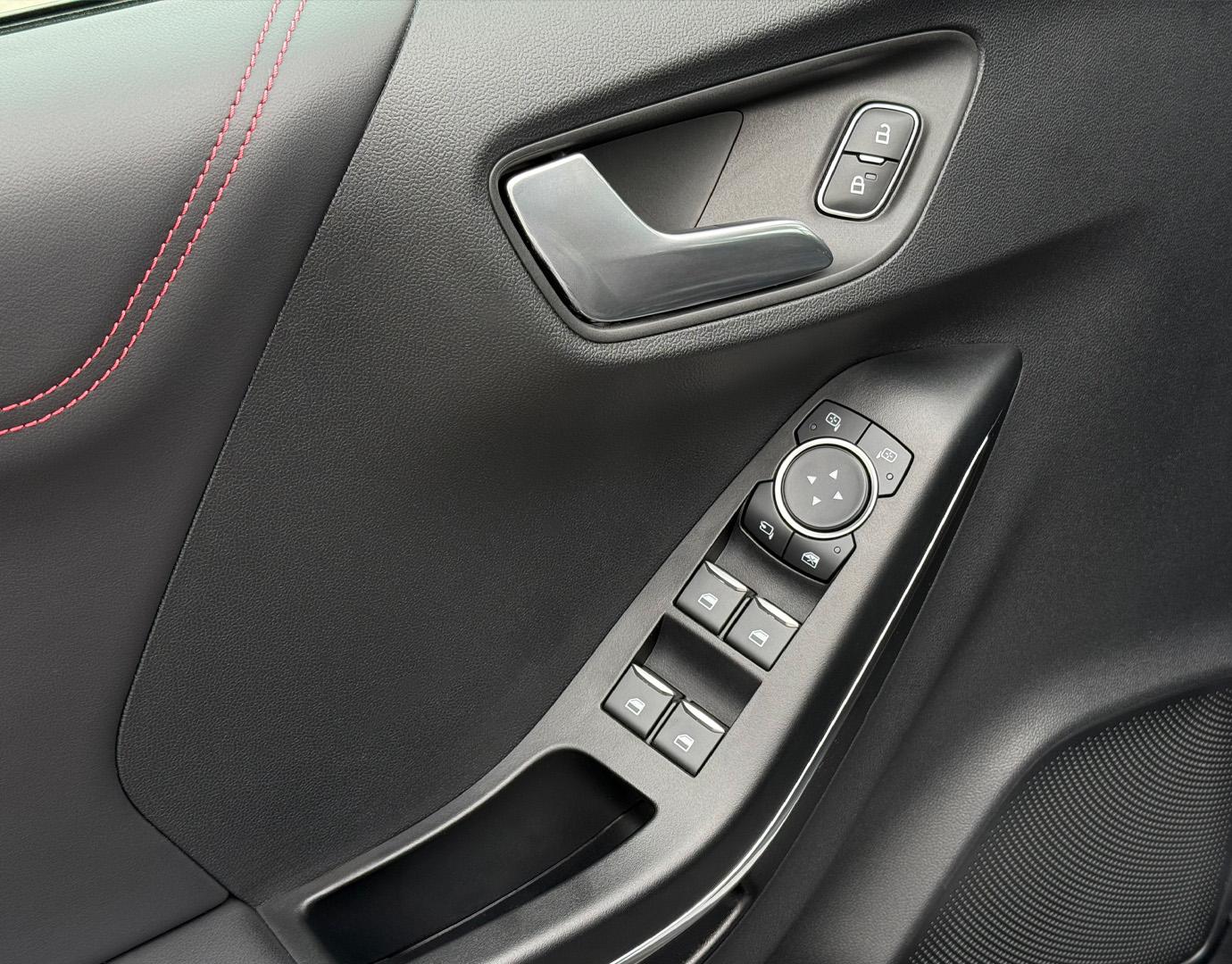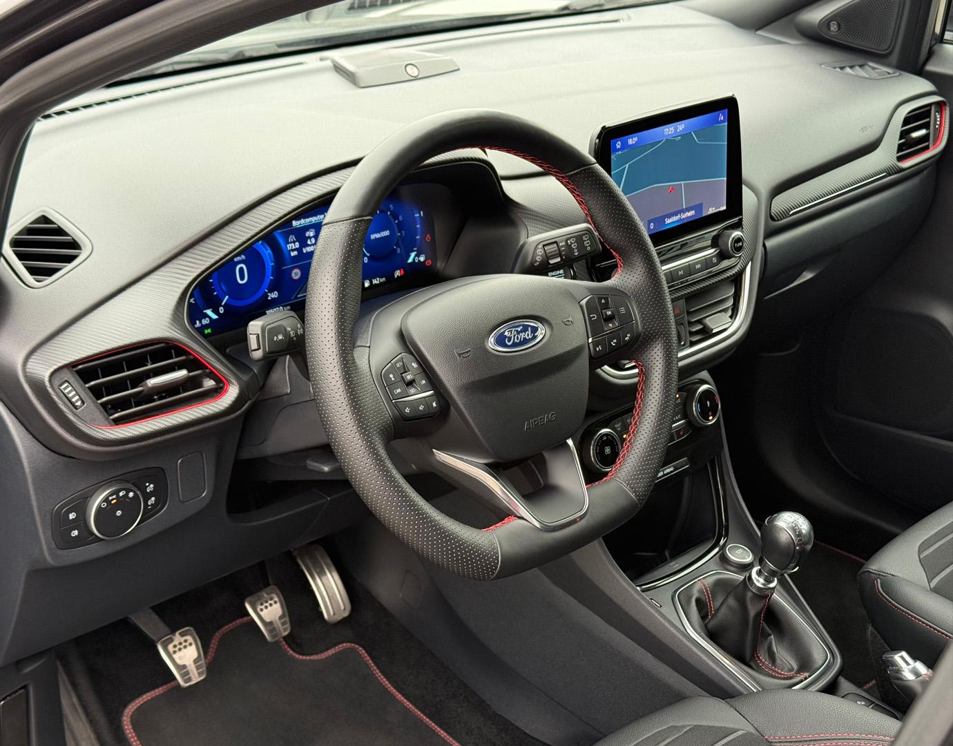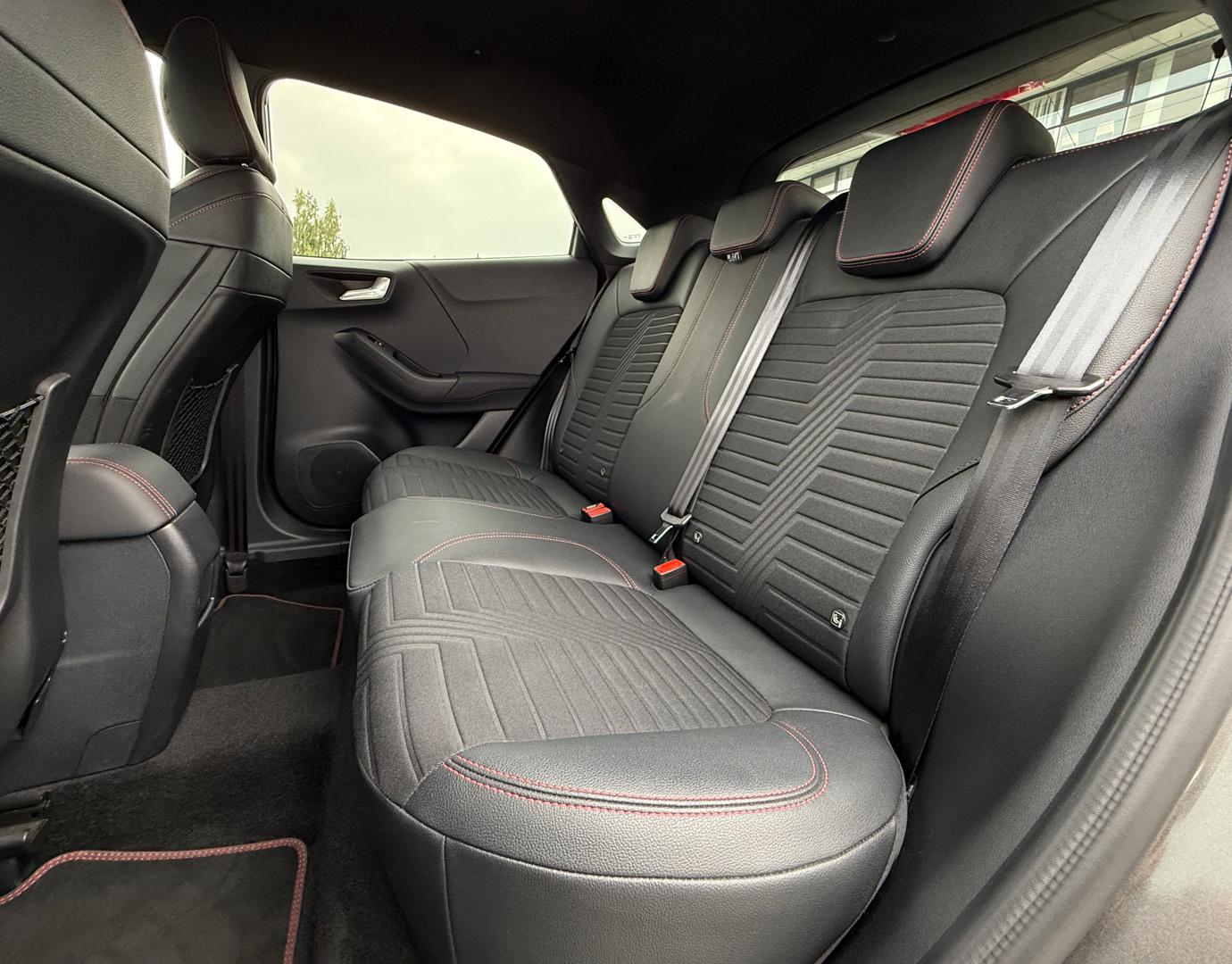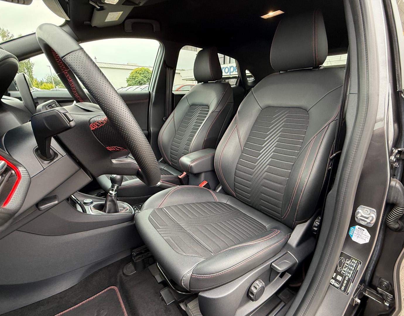 Innenausstattung Leder-Stoff-Polsterung in Anthrazit mit roten Ziernähten