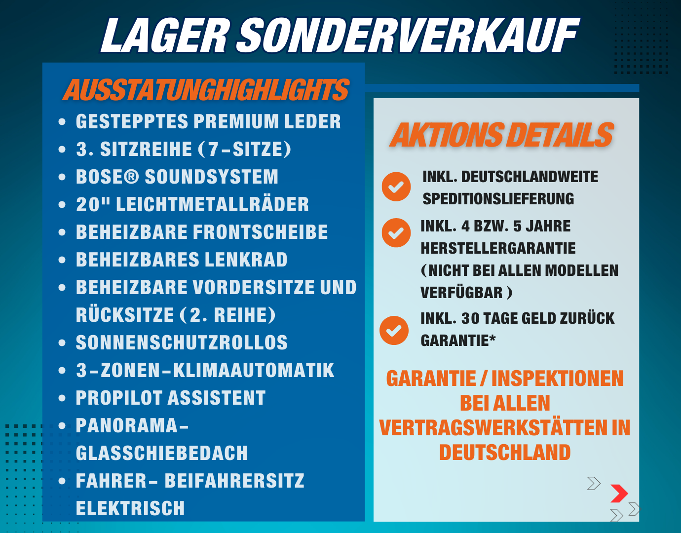 Hinweis zur Serienausstattung: Die Serienausstattung entspricht in weiten Teilen dem deutschen Modell – oft sogar mit weiteren Extras inklusive. Aus Platzgründen ist nur ein Auszug dargestellt. Für Details kontaktieren Sie bitte unser Verkaufsteam.