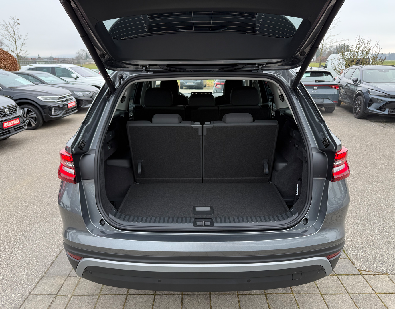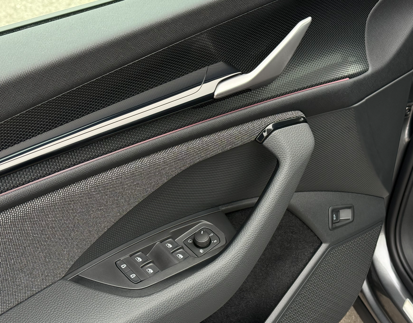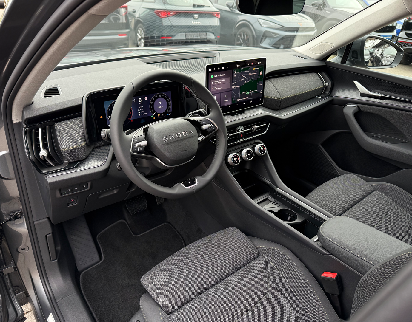 Innenausstattung Innenausstattung "Loft" bestehend aus: Komfortsitze in Stoff (schwarz/Ziernähte grün); Dekor Metallic grey; Armaturentafel-Mittelteil in Stoff (grau); Türverkleidung in Stoff/Kunstleder-Kombination (grau/schwarz); Dachhimmel grau; Mittelarmlehne in Kunstleder (schwarz/Ziernähte grün); LED-Ambientebeleuchtung (Streifen an den Türen vorne/hinten, Armaturentafel, Fußraum vorne/hinten, Staufächer in den Türen vorne/hinten)