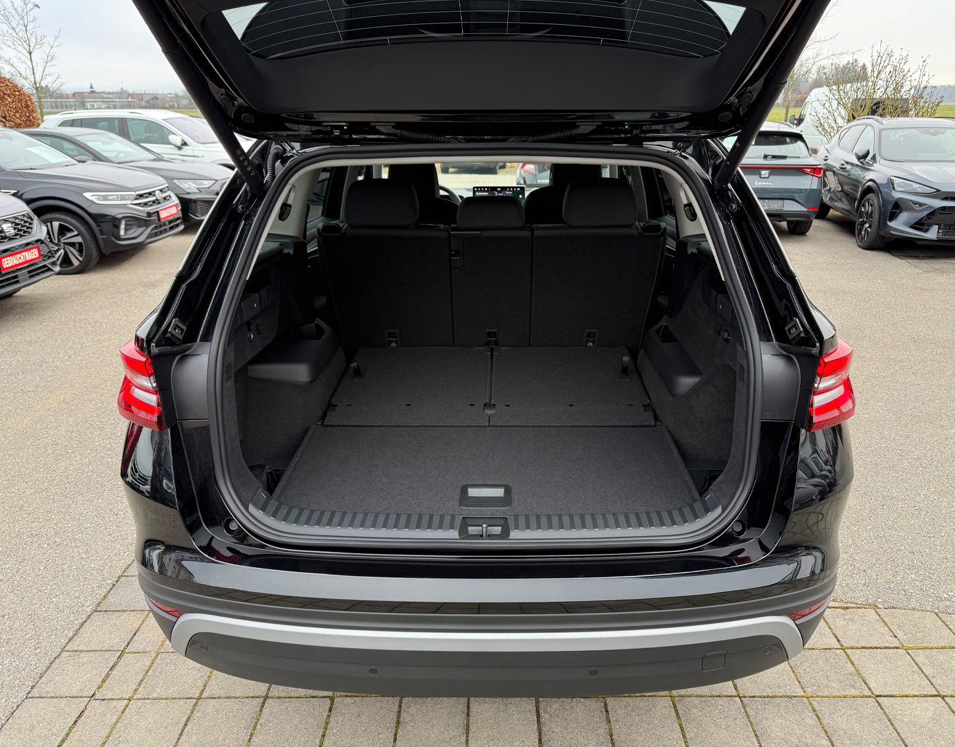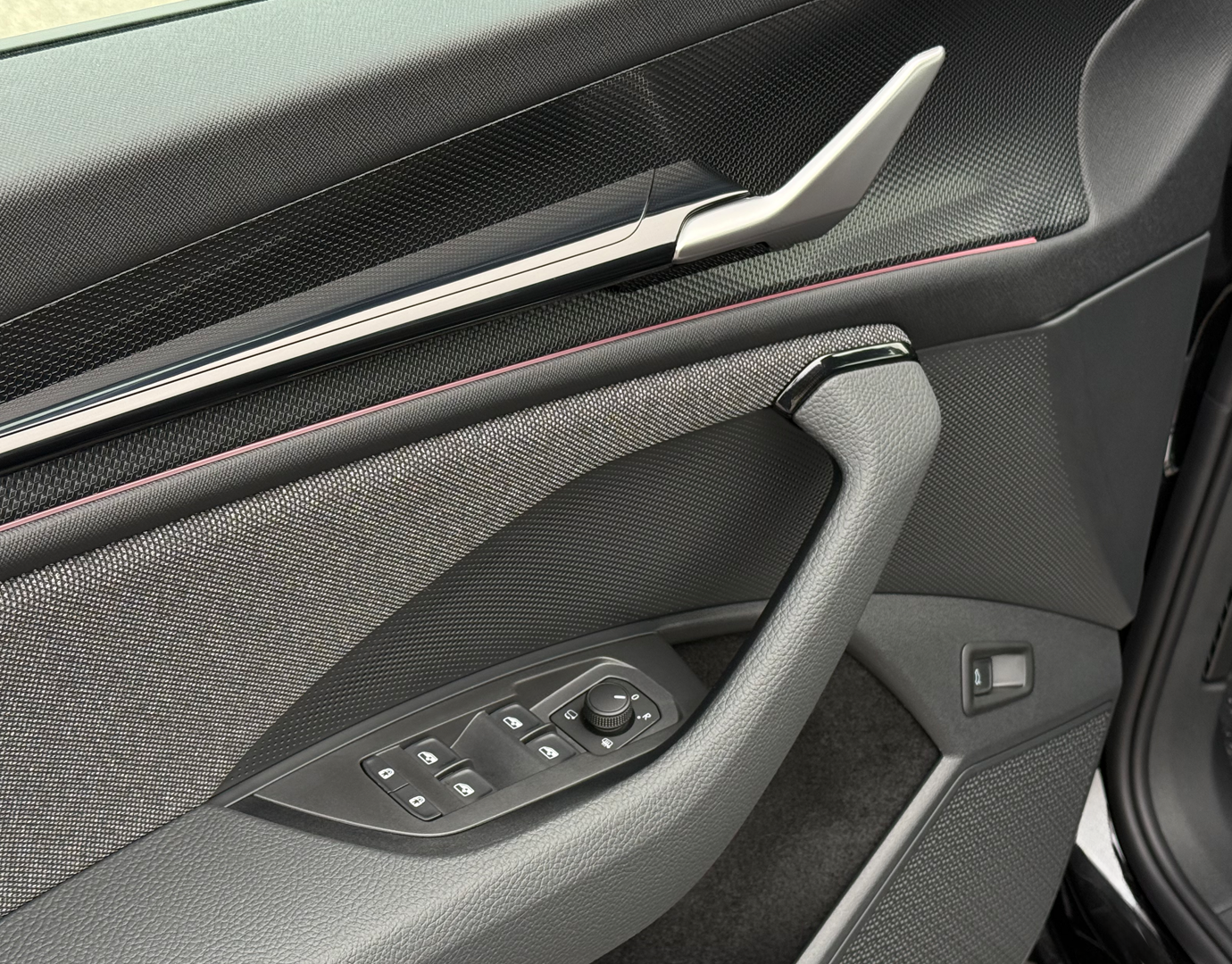 Innenausstattung Innenausstattung "Loft" bestehend aus: Komfortsitze in Stoff (schwarz/Ziernähte grün); Dekor Metallic grey; Armaturentafel-Mittelteil in Stoff (grau); Türverkleidung in Stoff/Kunstleder-Kombination (grau/schwarz); Dachhimmel grau; Mittelarmlehne in Kunstleder (schwarz/Ziernähte grün); LED-Ambientebeleuchtung (Streifen an den Türen vorne/hinten, Armaturentafel, Fußraum vorne/hinten, Staufächer in den Türen vorne/hinten)
