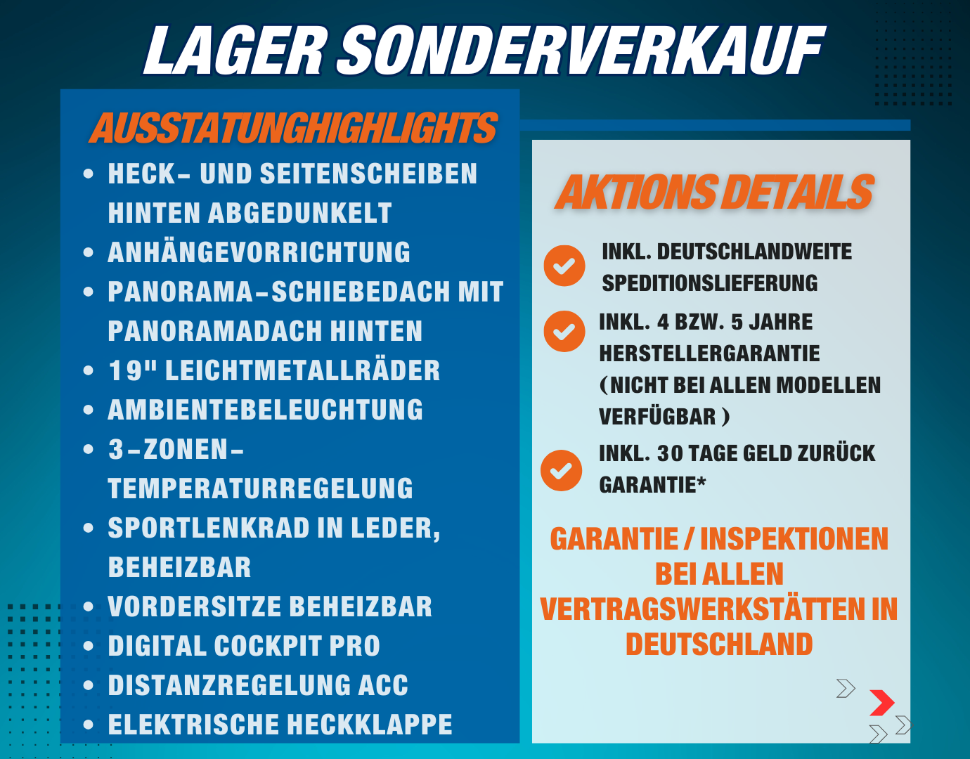 Neuwagen mit nachfolgenden Sonderausstattungen (Zusätzlich bzw. Abweichend zur Serienausstattung):
