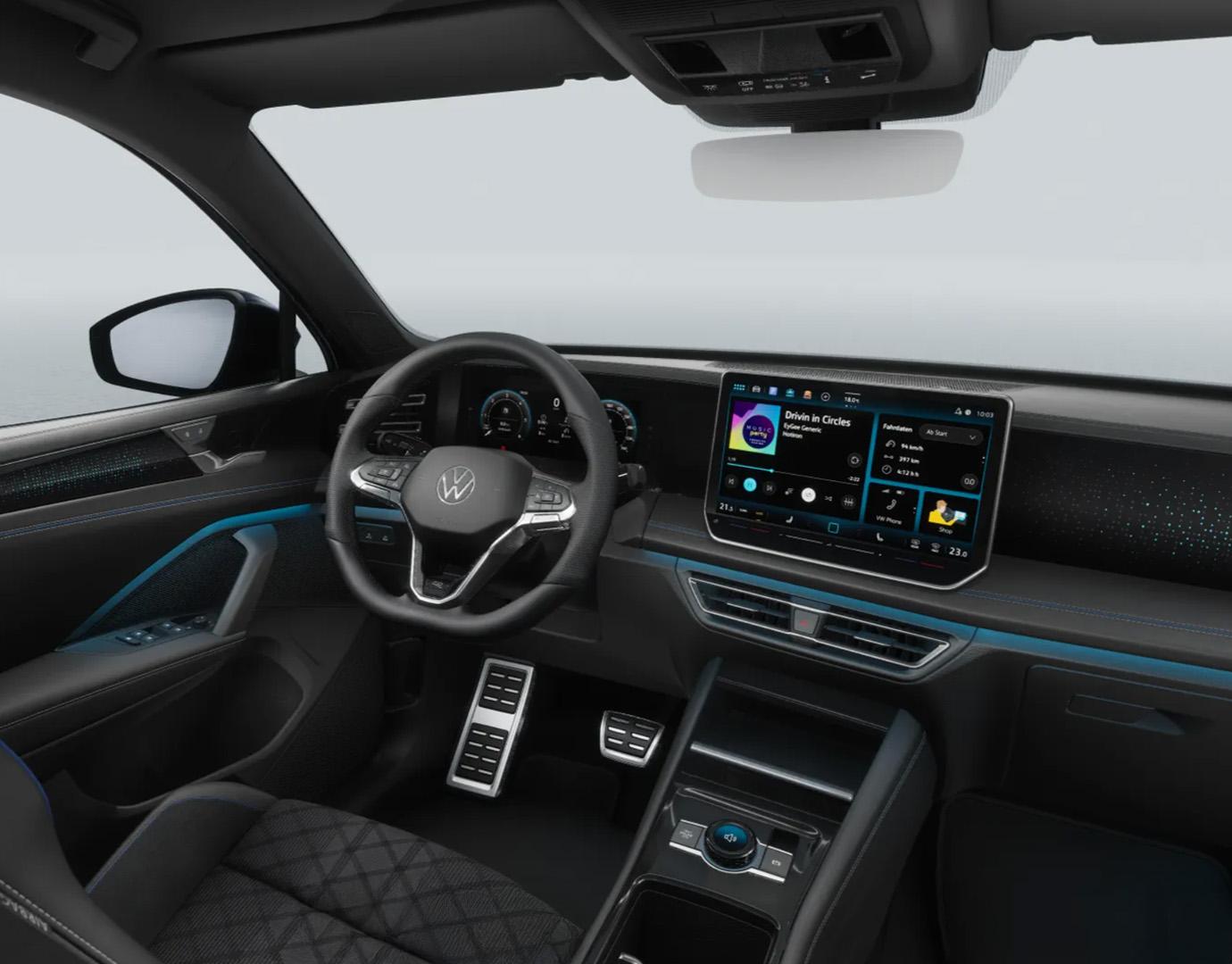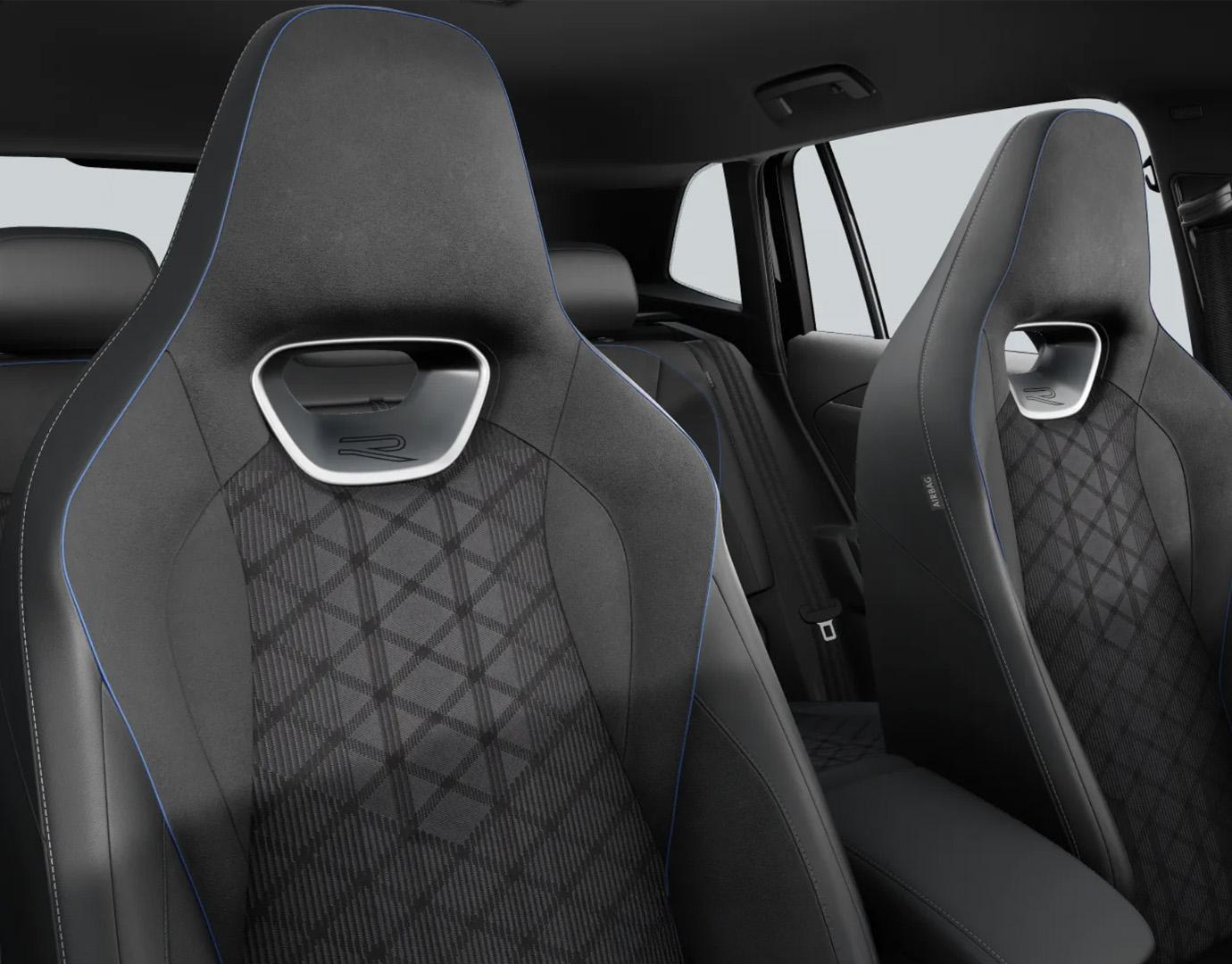 Innenausstattung Sitzmittelbahnen der Vordersitze und der äußeren Rücksitzplätze in Stoff „R-Line“ in Soul-Schwarz